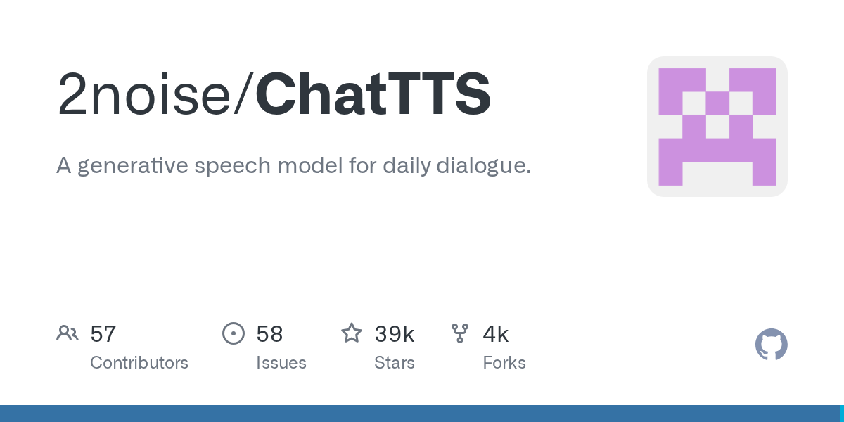 GitHub - 2noise/ChatTTS: A generative speech model for daily dialogue.