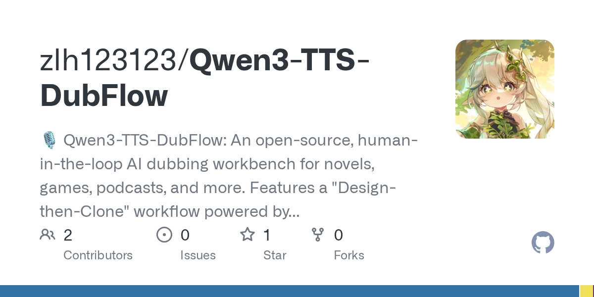 ๐๏ธ Qwen3-TTS-DubFlow: An open-source, human-in-the-loop AI dubbing workbench. Design custom voices via natural language (Qwen3-TTS) and generate high-fidelity audio (CosyVoice 3) for novels, games, podcasts, and more.