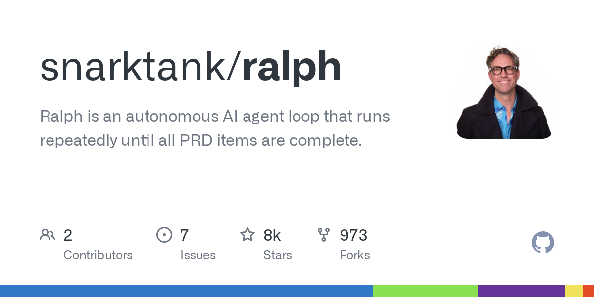 Ralph is an autonomous AI agent loop that runs repeatedly until all PRD items are complete. - GitHub - snarktank/ralph: Ralph is an autonomous AI agent loop that runs repeatedly until all PRD item...