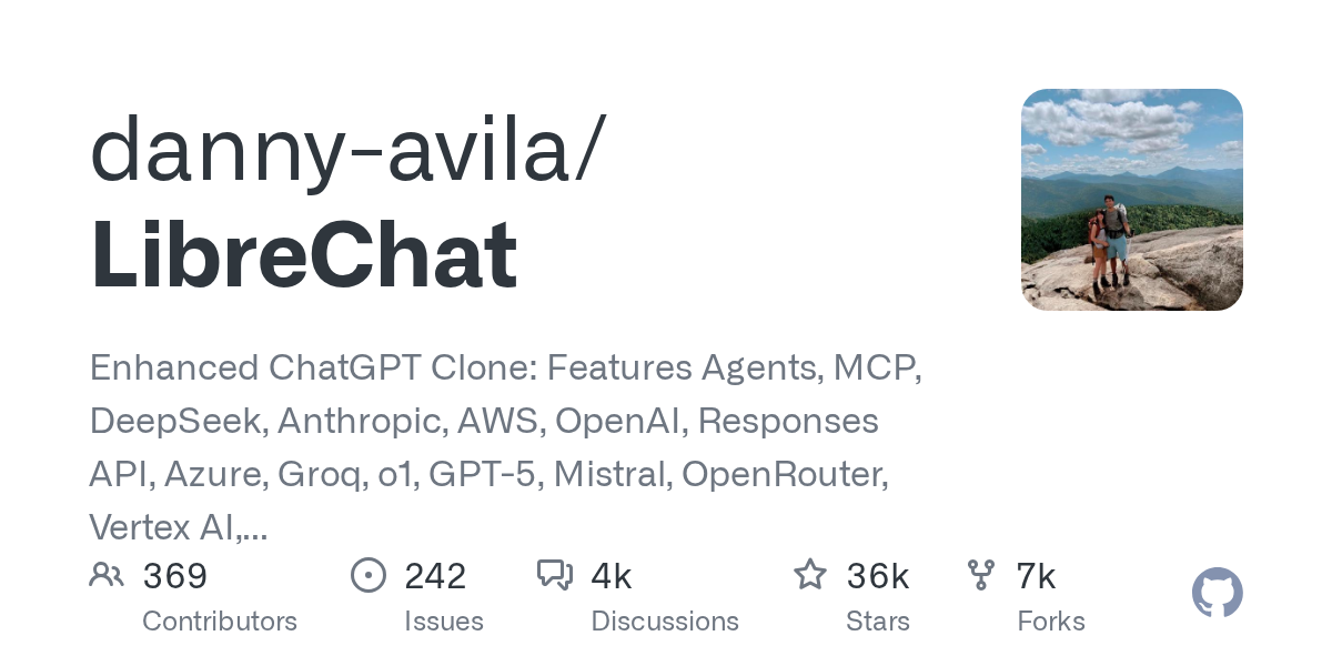 Enhanced ChatGPT Clone: Features Agents, MCP, DeepSeek, Anthropic, AWS, OpenAI, Responses API, Azure, Groq, o1, GPT-5, Mistral, OpenRouter, Vertex AI, Gemini, Artifacts, AI model switching, message search, Code Interpreter, langchain, DALL-E-3, OpenAPI Actions, Functions, Secure Multi-User Auth, Presets, open-source for self-hosting. Active.