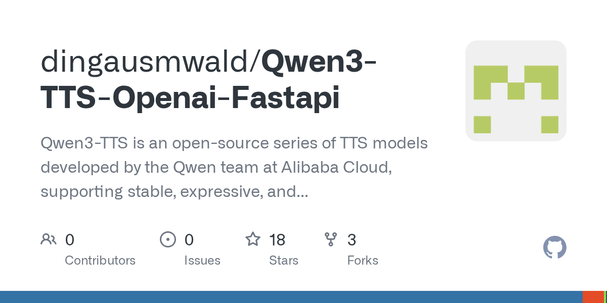 Qwen3-TTS is an open-source series of TTS models developed by the Qwen team at Alibaba Cloud, supporting stable, expressive, and streaming speech generation, free-form voice design, and vivid voice cloning.