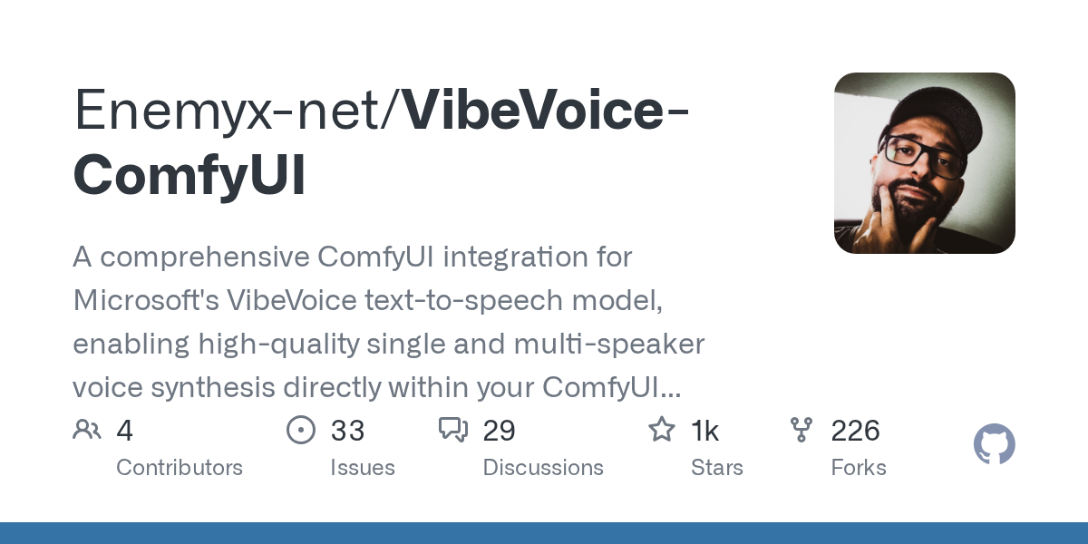 A comprehensive ComfyUI integration for Microsoft's VibeVoice text-to-speech model, enabling high-quality single and multi-speaker voice synthesis directly within your ComfyUI workflows.