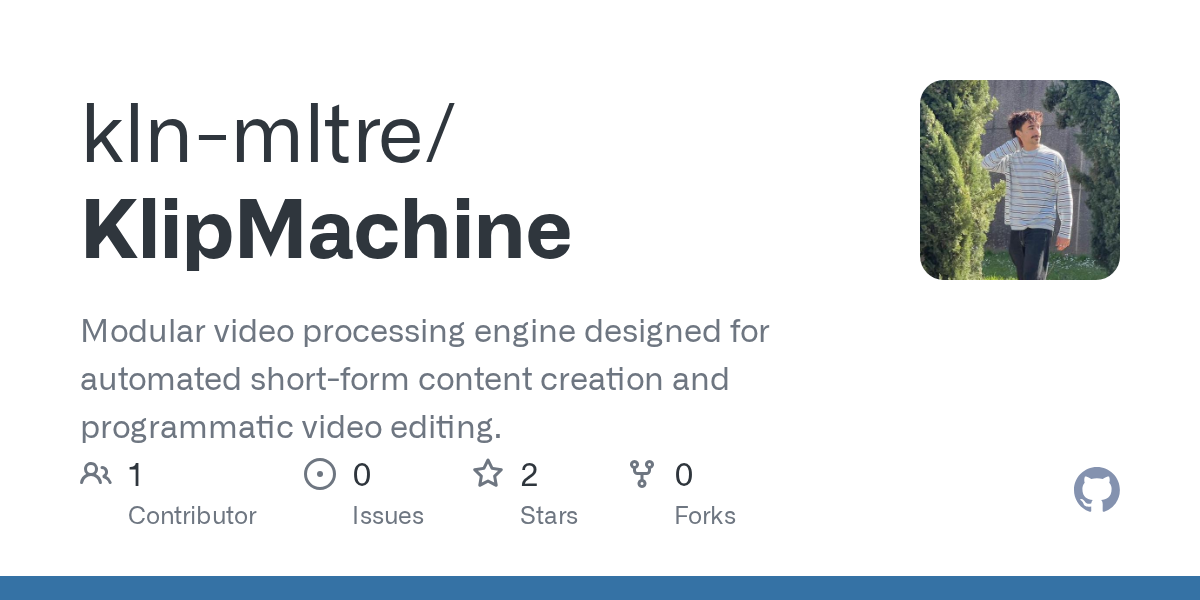 Modular video processing engine designed for automated short-form content creation and programmatic video editing.