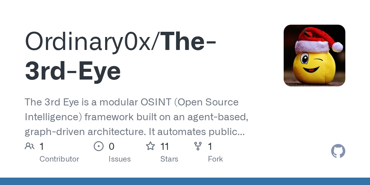 The 3rd Eye is a modular OSINT (Open Source Intelligence) framework built on an agent-based, graph-driven architecture. It automates public information discovery, identity correlation, and exposure analysis across multiple platforms, and generates structured intelligence reports. The system follows a LangGraph agent design.