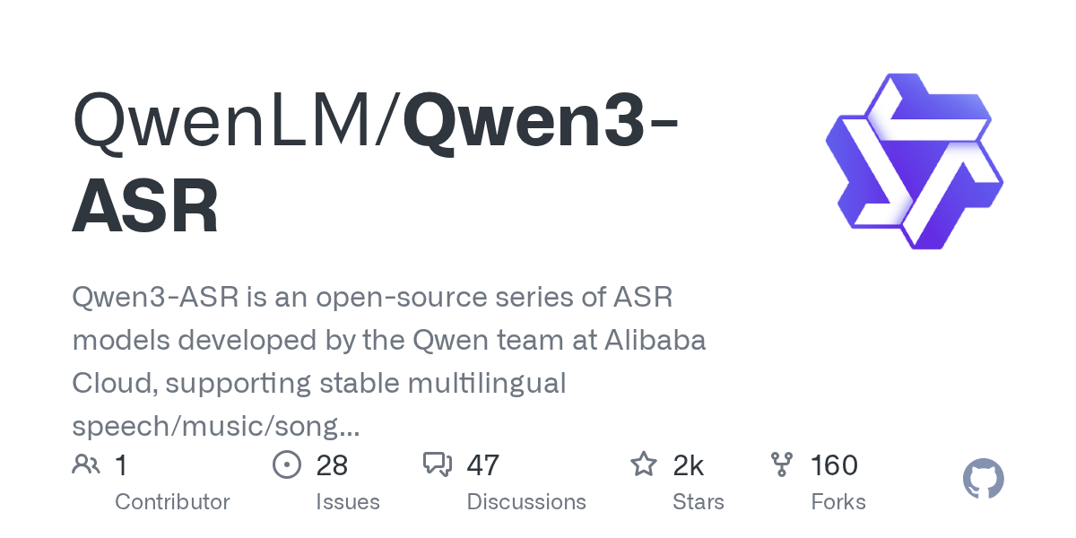 Qwen3-ASR is an open-source series of ASR models developed by the Qwen team at Alibaba Cloud, supporting stable multilingual speech/music/song recognition, language detection and timestamp prediction.