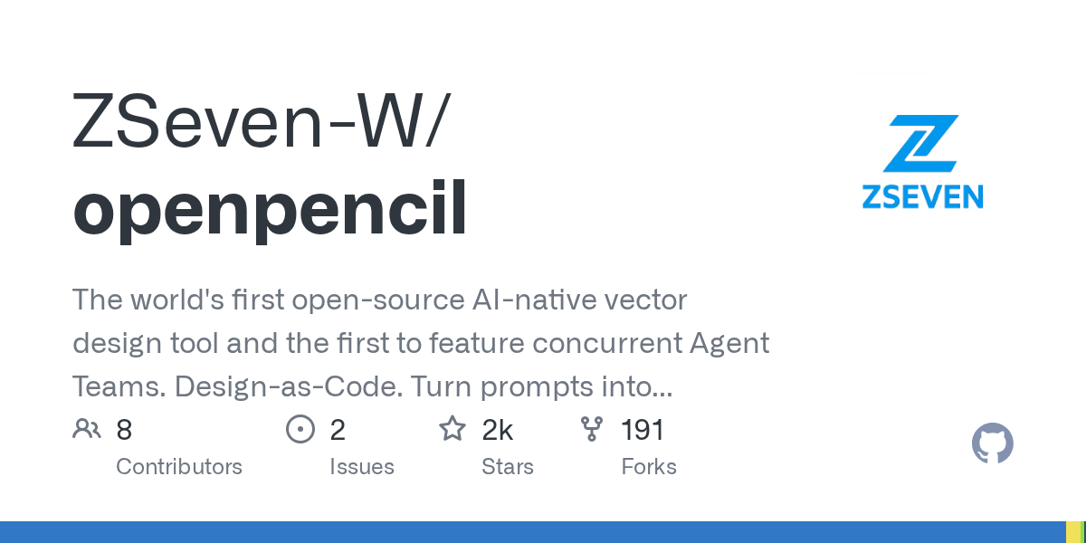 The world's first open-source AI-native vector design tool and the first to feature concurrent Agent Teams. Design-as-Code. Turn prompts into UI directly on the live canvas. A modern alternative to Pencil.