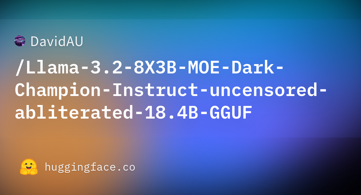DavidAU/Llama-3.2-8X3B-MOE-Dark-Champion-Instruct-uncensored-abliterated-18.4B-GGUF · Hugging Face