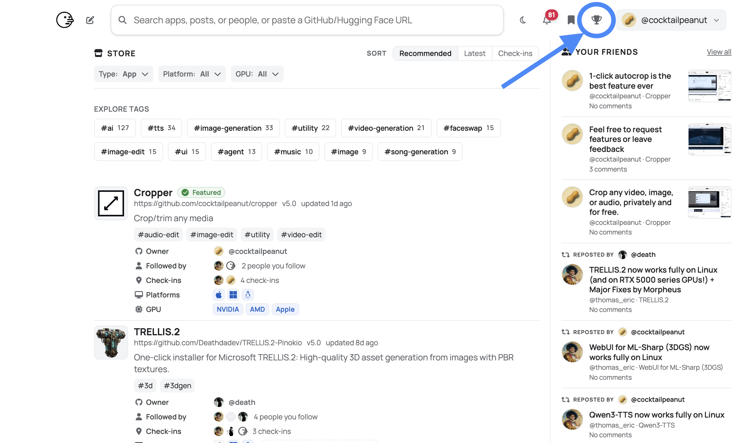 When you publish pinokio projects and a lot of people start following it, you will get points as a creator.
