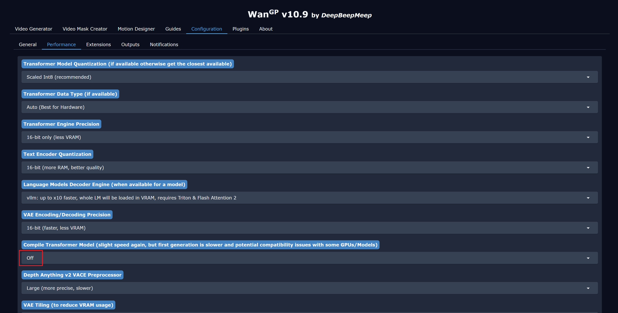 To deactivate Compile Transformer Model go to Configuration - Performance and set Compile Transofmer Model to Off.