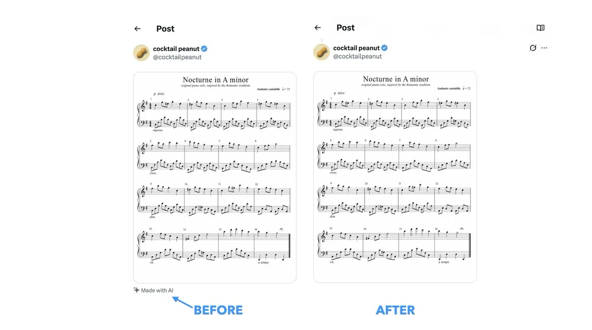 x.com started parsing metadata from uploaded images and using it to automatically mark posts as "Made with AI".
